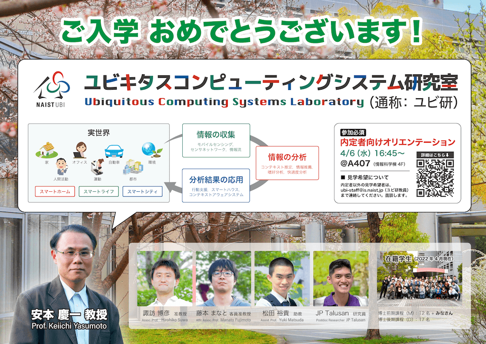 If you are a candidate assigned to other laboratories, but you are interested in ubi-lab, please send email to ubi-staff@is.naist.jp (ubi-lab’s staff). We will arrange meeting with you.