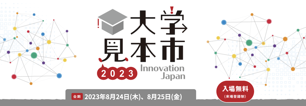 「大学見本市~イノベーション・ジャパン」は、全国の大学や公的研究機関等から創出された研究成果の社会還元、技術移転を促進すること、及び、実用化に向けた産学連携等のマッチング支援を実施することを目的として、2004年から国立研究開発法人科学技術振興機構(JST)が開催しています。